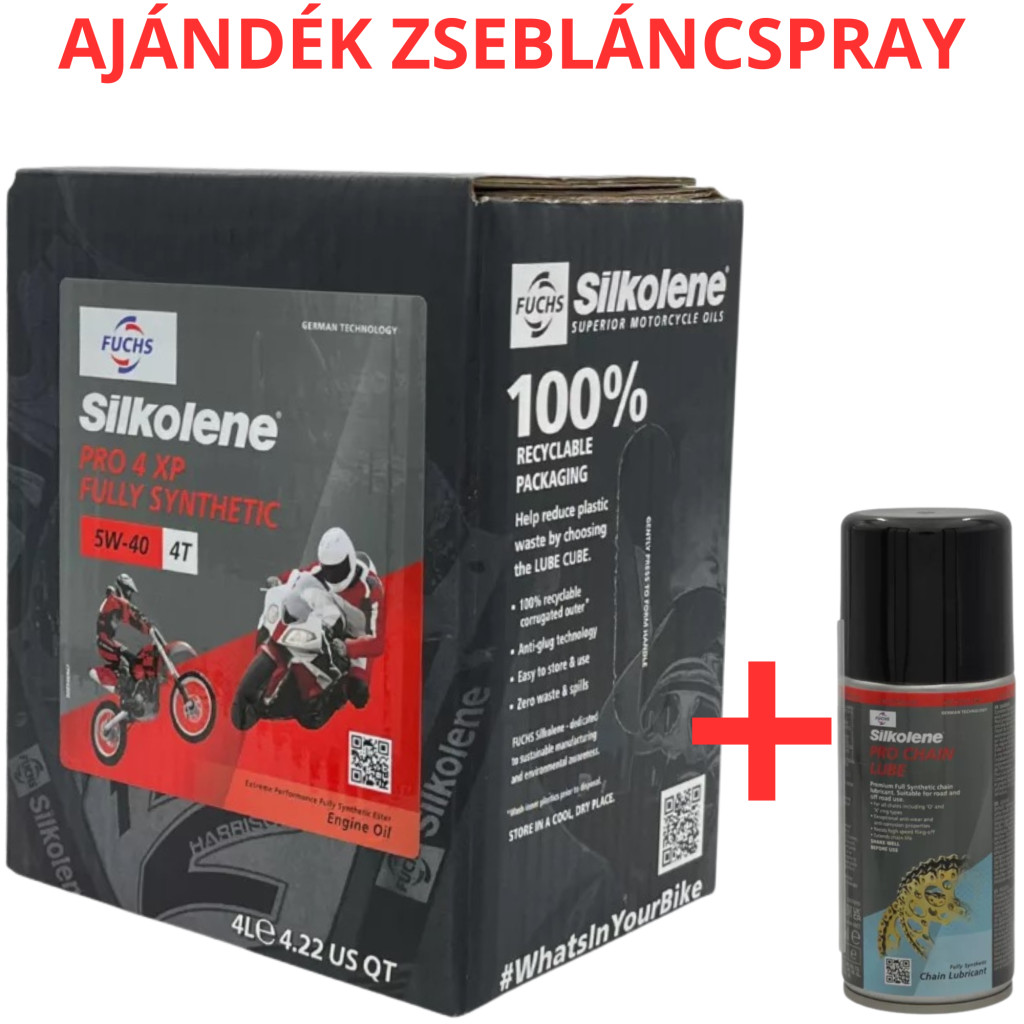 Jóváhagyások: API SM/SN JASO MA2 Az XP Technológia alkalmazásával, egy innovatív, magas nyírási stabilitású, alacsony párolgási hajlamú formula jött létre, amellyel megnövelt teljesítményt, hosszabb motor és sebességváltó védelmet, csökkentett olajfogyasztás és megnövelt üzemanyag megtakarítást érünk el. XP Technológia csökkenti a motor kopását, és súrlódást, minden kritikusan terhelt fémfelületen akár magas hőmérsékletek esetén, akár a hidegindítások alkalmával. Alkalmazás A SILKOLENE PRO 4 XP termékcsalád úgy van kialakítva, hogy kielégítse a közúti és az off-road motorkerékpárok lég- és vízhűtéses 4-ütemű motorjainak igényeit. Előnyei Egy termék sorozat, amely megfelel az összes magas teljesítményű 4-ütemű közúti és Off-Road motorkerékpár motorolaj igényének. Kiterjedt versenytapasztalatok és teszt-elemzések mutatják, a teljesítmény jelentős növekedését, az üzemanyag fogyasztás és az olajfogyasztás csökkenését a hasonló olajokhoz képest. Speciális felületi kémia kiemelkedő kopás-gátlóhatást nyújt, még versenykörülmények alatt is, a létfontosságú alkatrészek védelmére, mint a dugattyúk, furatok, vezérlőbütykök és csapágyak. Megnövelt védelem a magas hőmérsék- leteken keletkező lerakódások ellen, ezáltal tisztább motor, hosszabb motorélettartam és teljesítmény megtartás. Alkalmas sebességváltókhoz és hajtóművekhez, ahol motorolaj alkalmazása az előírás és ennek technológiája által biztosítja a jó pittingesedés elleni védelmet. Kiegyensúlyozott súrlódási tulajdonságok adják a pontos tengelykapcsoló kontrolt / működést. Ezek mellett jó korrózió elleni védelmet, jobb oxidációs / nitrációs ellenállást nyújt.