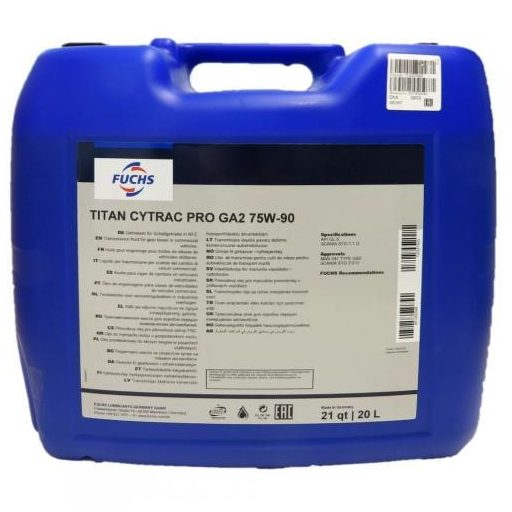 • Jóváhagyások: API GL-5 SCANIA STO 1:1 G MAN 341 TYPE GA2 SCANIA STO 2:0 G : A TITAN CYTRAC PRO GA2 SAE 75W-90 egy prémium teljesítményű hajtóműolaj, kifejezetten Scania és MAN haszongépjárművek kézi és automata sebességváltóihoz