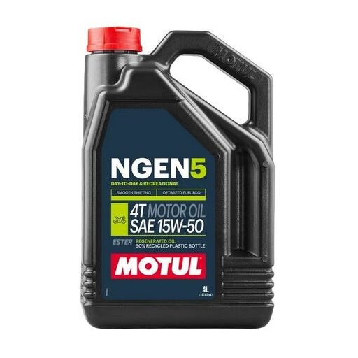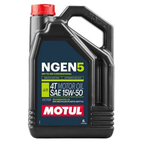 Jóváhagyások: API SM, JASO MA2 No. M033MOT193 A MOTUL NGEN 5 egy innovatív, környezetbarát motorolaj. A legkiválóbb alapolajok és adalékok keveréke, szintetikus észter olajokat és extrém minőségű regenerált olajokat tartalmaz. Négyütemű utcai vagy off-road motorokhoz, a sebességváltóval közös vagy attól független olajterű, nedves vagy szárazkuplungos konstrukciókhoz alkalmas. Tökéletes megoldás kipufogógáz utókezelő rendszerrel ellátott motorkerékpárokhoz, katalizátoros vagy másodlagos levegő légbefúvásos megoldásokhoz. Mind hétköznapi, mind pedig rekreációs célból használt motorkerékpárokhoz alkalmas. Tökéletes megoldás olyan Youngtimer vagy Classic motorkerékpárokhoz. További felhasználási területek: ATV-k, UTV-k, quadok, Side by Side quadok és robogók stb. Felhasználás: Hétköznapi vagy rekreációs célú motorkerékpárok Minőségi kategória: Környezetbarát szintetikus motorolaj Felhasználási javaslat: A motorkerékpár gyártójának előírásai szerint vagy a használati szokásoknak megfelelően. Szintetikus vagy ásványi olajokkal keverhető.